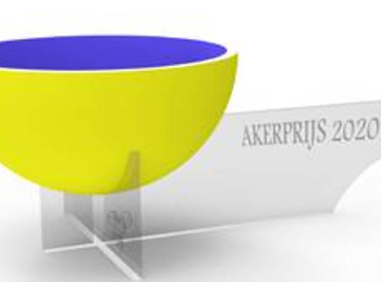De laureaat zal uiteraard ook een kunstwerk in ontvangst mogen nemen. De prijs wordt een moderne designschaal van de hand van architect Jo Van Bouwel en deze zal gedurende de komende vijf edities als Akerprijstrofee uitgereikt worden.