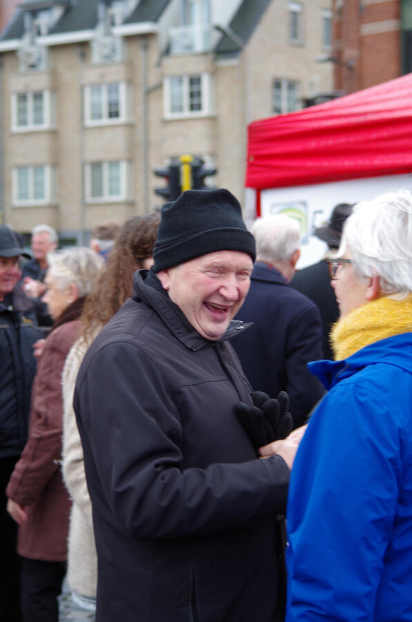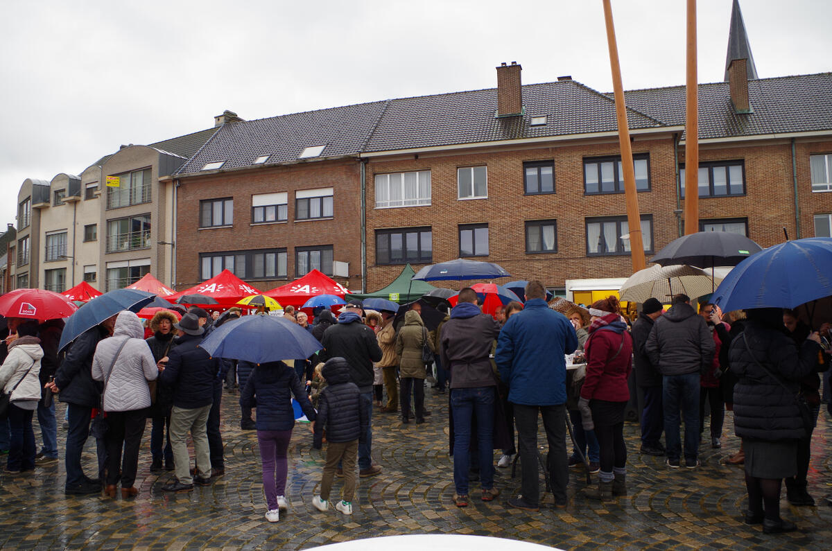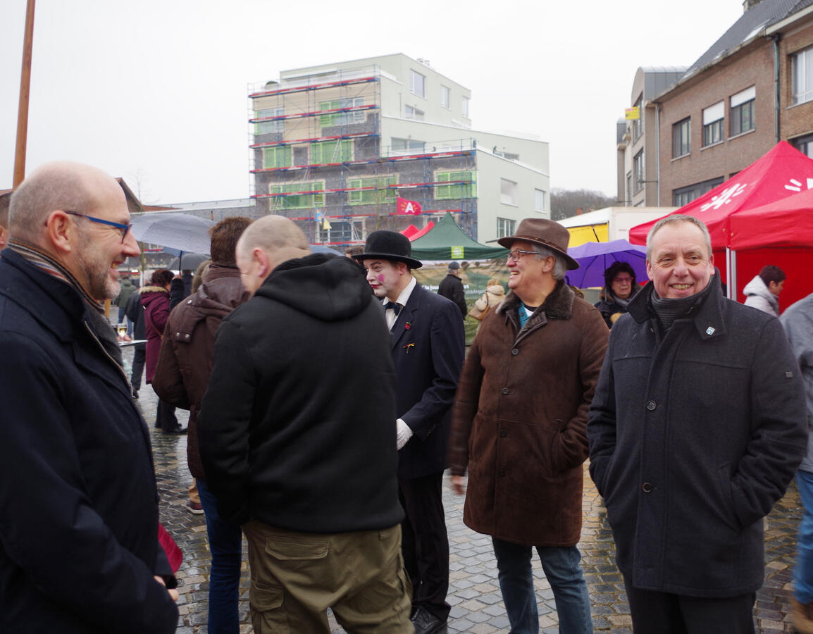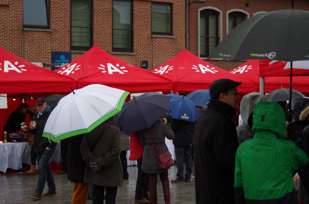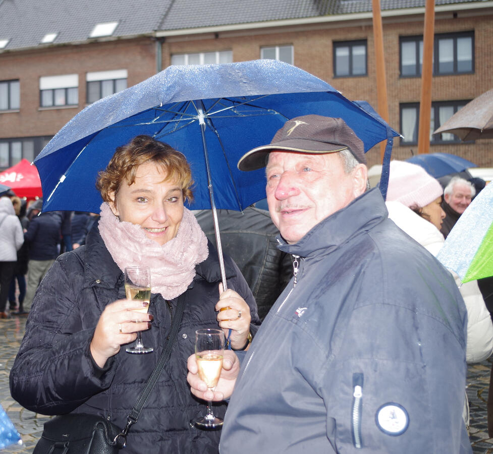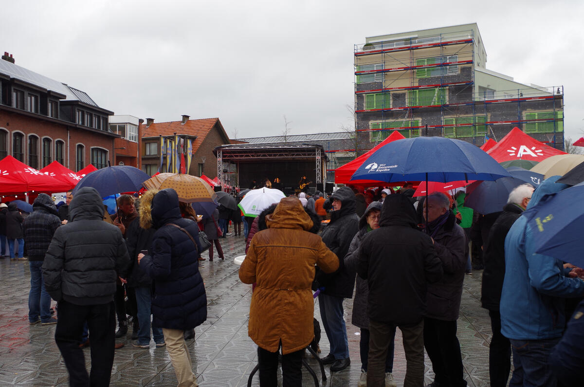 Ondanks de regen, veel volk op de nieuwjaarsdrink op het Kristus Koningplein voor de inwoners van Ekeren.