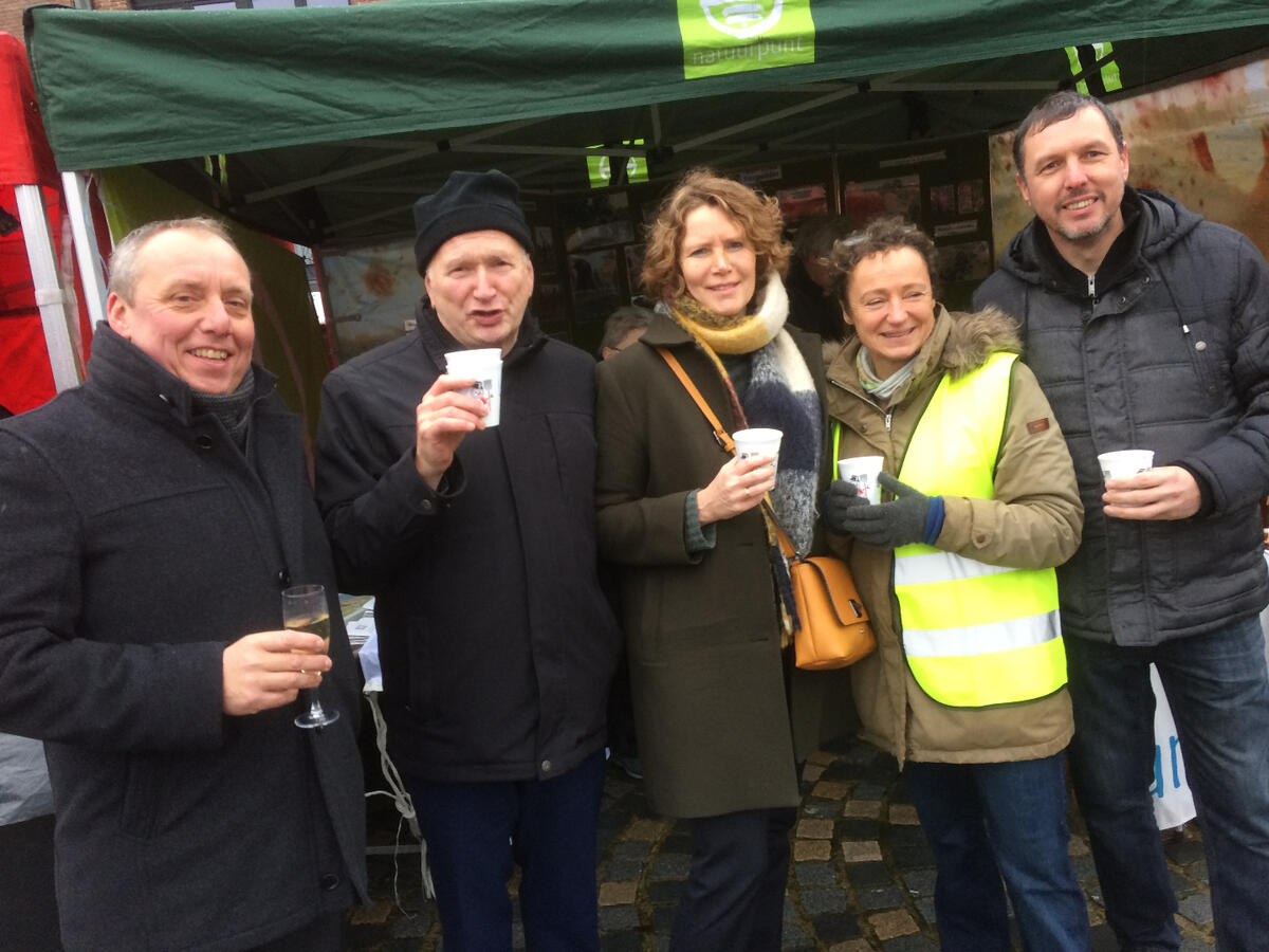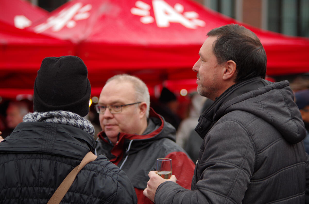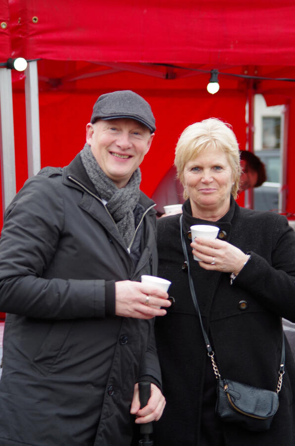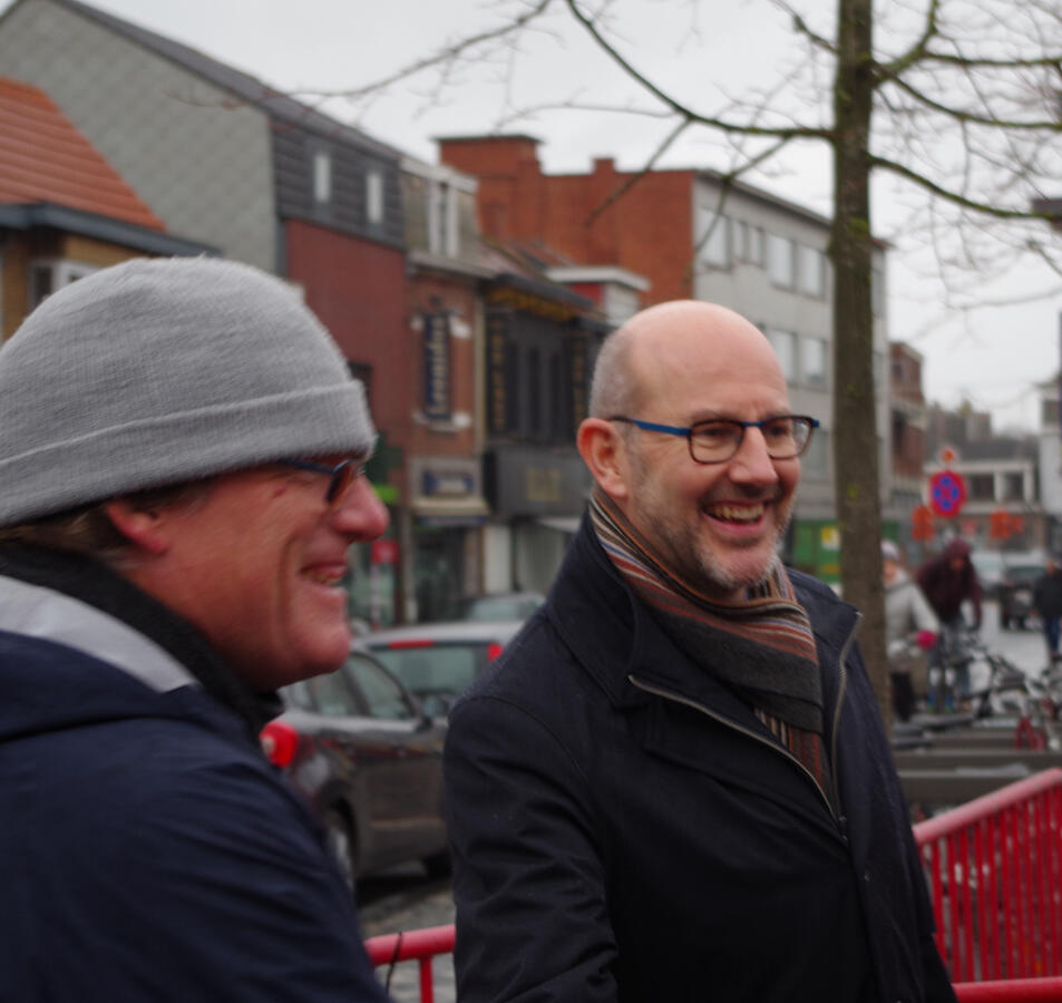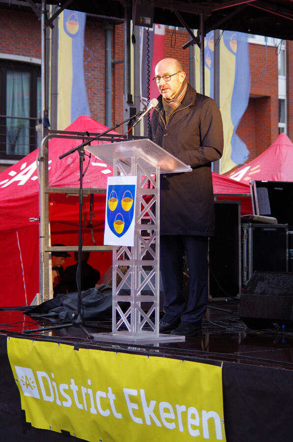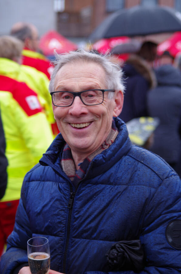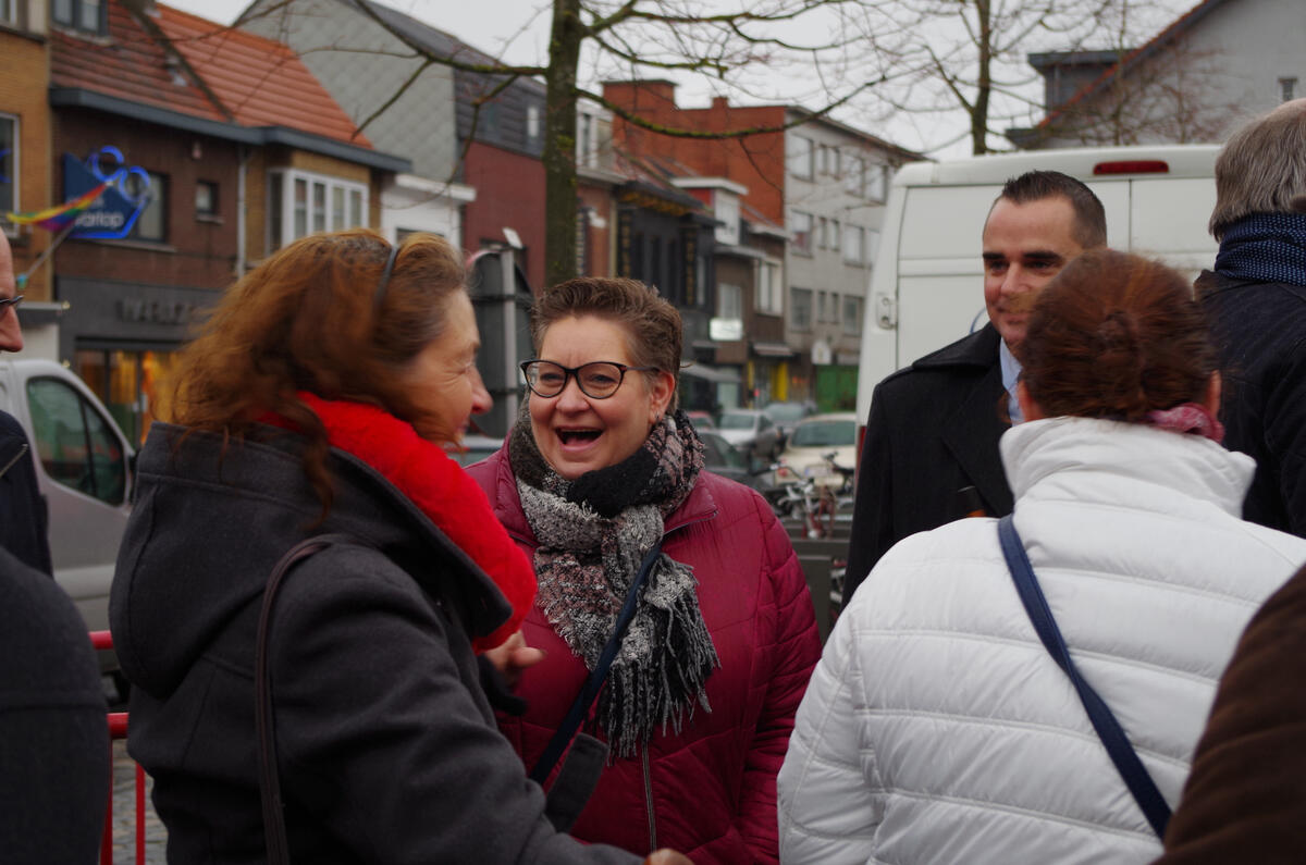 Ondanks de regen, veel volk op de nieuwjaarsdrink op het Kristus Koningplein voor de inwoners van Ekeren.