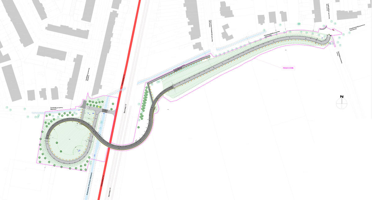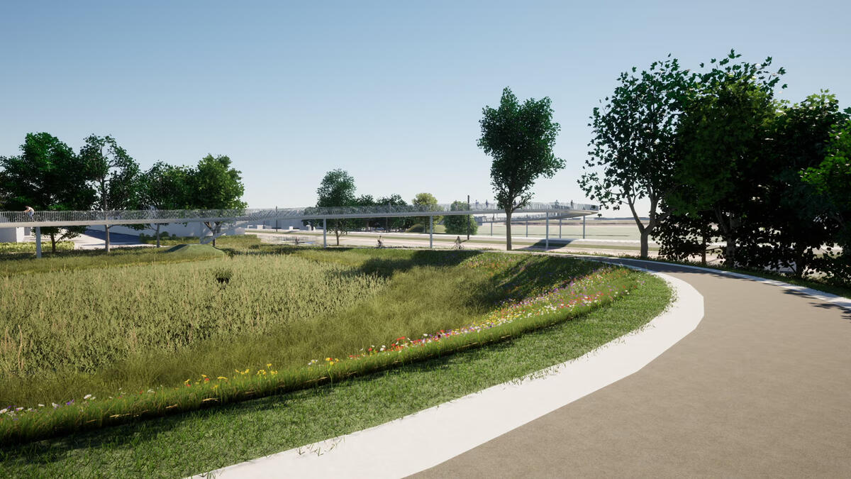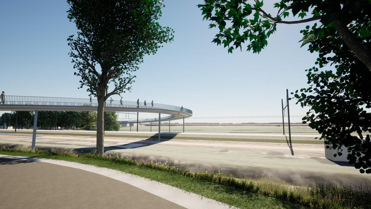 komt er aan beide zijden van de spoorweg een boogvormige trap zodat voetgangers vlot kunnen oversteken.