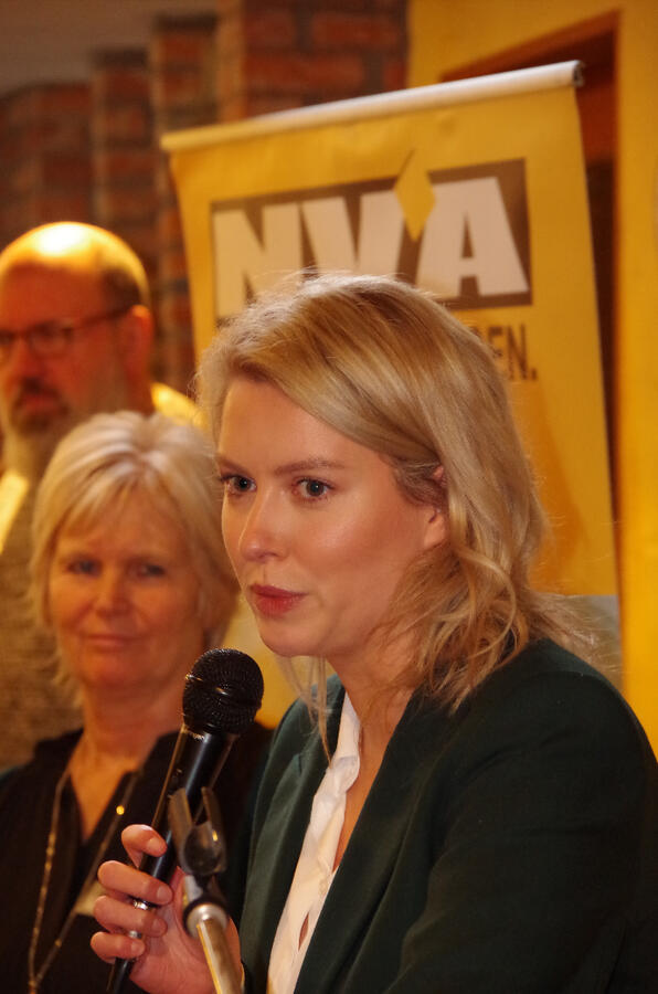 Els Van Doesburg richtte zich tot de aanwezigen over het 'sluipend gif' in onze maatschappij en de uitdagingen waar we tegenaan lopen in de begrotingen in de verschillende landsdelen waarbij duidelijk is dat Vlaanderen zich de beste leerling toont. Ze verzekerde echter dat wanneer mensen zich afvragen bij de lezen van de krant of ze de enige normalen nog zijn, ze bij N-VA, waar normaalheid nog hoog in het vaandel staat, op de juiste plaats zitten.