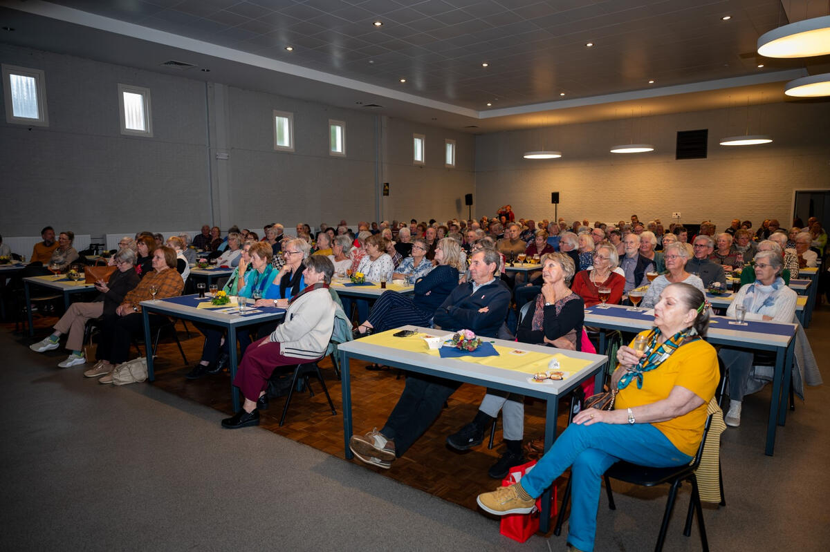 Na een korte verwelkoming van schepen Annemie Plompen trapte Jan Van Looveren de middag af. Samen met Dirk Cassiers gaven de beide, met hun voorstelling Rat Pack, het beste van zichzelf. Ze brachten een namiddag vol bekende crooners met hun prachtige stemmen. Alle bekende nummers passeerden de revue. Een lach is ook nooit ver weg. De commentaren die ze aan elkaar geven zijn er ‘boenk op’ met de nodige hilariteit tot gevolg. Afsluitend deden verschillende senioren nog een dansje op de muziek van Radio Minerva om dan met een goed gevoel huiswaarts te keren. Op naar de 4e editie!