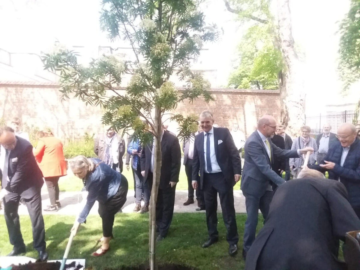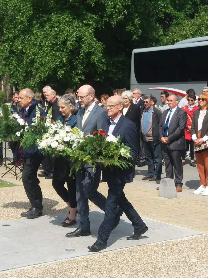 Op zaterdag volgde nog een indrukwekkende herdenking aan het monument voor de oorlogsslachtoffers van de beide wereldoorlogen. Want in de puinhopen van die oorlogen lagen de fundamenten voor de Europese verzusteringen. Vanuit de gedachte “dat nooit meer!” begonnen vanaf de jaren ’50 de voormalige vijanden toenadering te zoeken, om vandaag hechte vrienden te zijn in Europa.